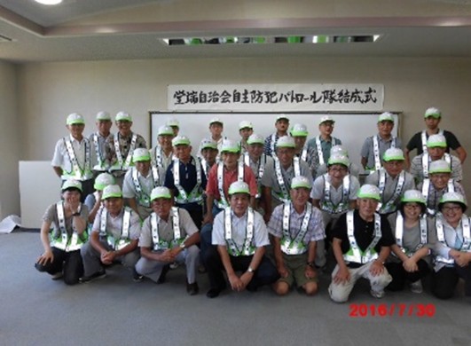 犯罪のない、安全で安心して暮らせる潤いのあるまちづくりを目指して、自治会では地域住民の皆さんと連携を深めながら、「自分たちのまちは自分たちで守る」を合言葉に、犯罪や事故の未然防止に取り組んでいます。