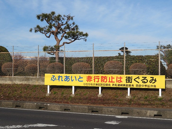 ひたちなか地区防犯連絡員協議会田彦中学区分会の紹介 活動目的は,犯罪のない安全で安心して生活できる地域社会の実現を目指して,住民の防犯思想の普及,高揚,善良な風俗の維持・発展並びに青少年の健全育成に寄与する。 年末特別警戒キャンペーン出陣式 啓蒙活動「設置看板」 連絡所表札 防犯連絡会田彦分会規約(2025年)