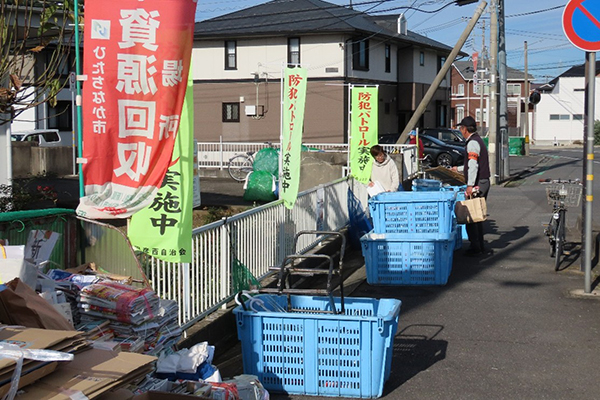 循環型社会の推進のため,家庭から出るリサイクルゴミを回収する取組みを地域の皆様とともに実践しています。